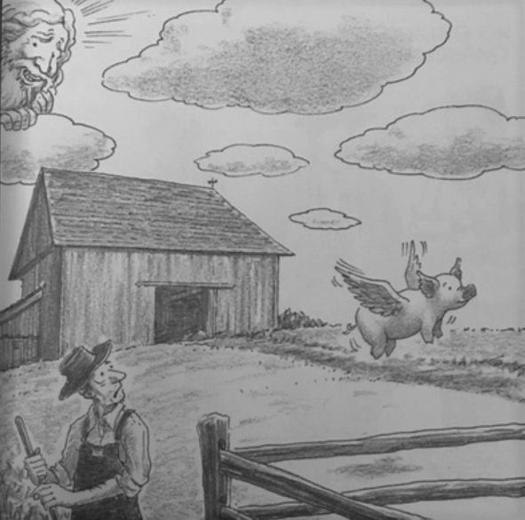 My Musings – The picture might not be all that “kosher,” but what is impossible for man, God is pleased to provide. At least when it comes to salvation. The young man had led an exemplary life, by human standards, but there was at least one thing he wanted to hang onto. It might not be wealth to us, but there is always at least something that we can not quite let go. Salvation by our own “desire and efforts?” When pigs fly. But what is impossible for us, God made possible through the sacrifice of His Son.