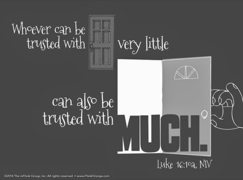 “Whoever can be trusted with very little can also be trusted with much.” (Luke 16:10, NIV 1984).
