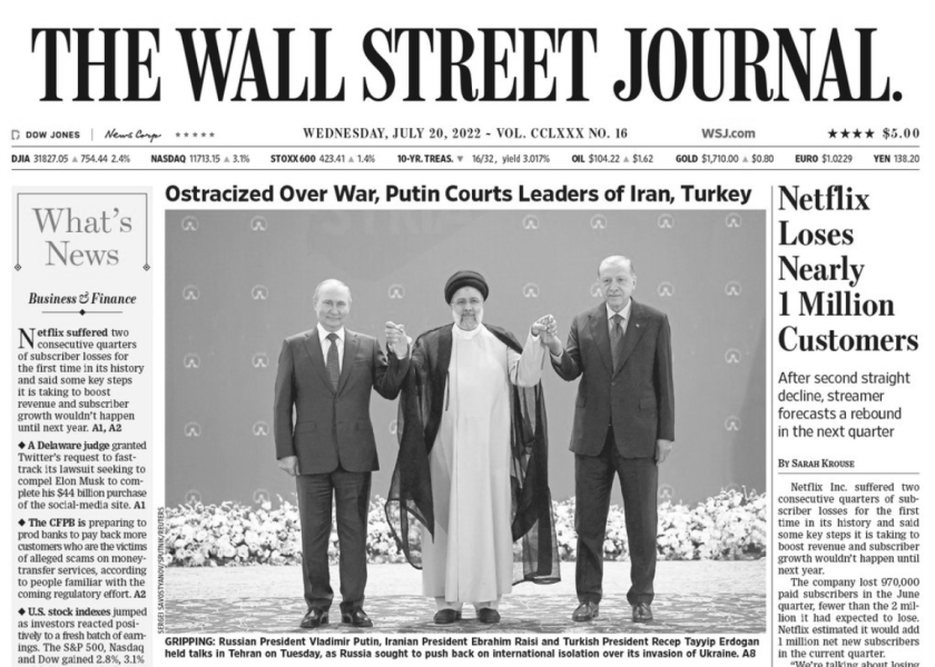 Russia, Iran, and Turkey Forming a Biblical Alliance – “Vladimir Putin [met] with Iranian and Turkish leaders in Tehran this [past] week [picture posted on page one of the WSJ).