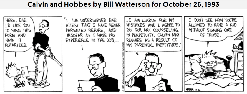 My Musings – Apparently Calvin is not old enough to know that real men don’t read instructions, or so it is generally believed. There were a lot of practical things I did not know when I became a parent. But the really important things I needed to learn were taught and modeled by my parents. But that was kind of like classroom instructions where you learn in theory. It is not until the real-life experience comes that you begin to fully understand and appreciate it.