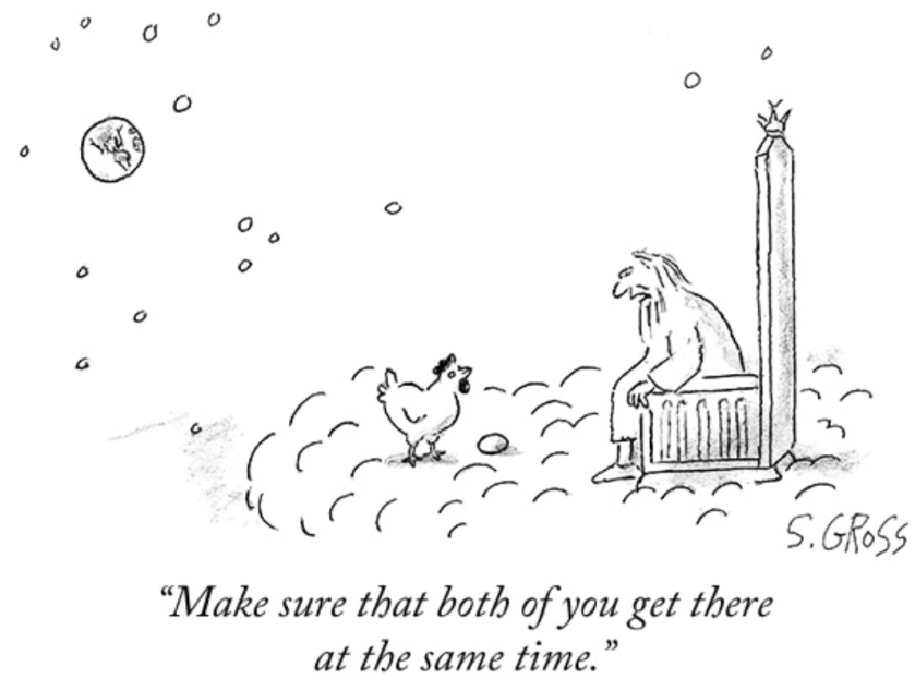 Which came first, the chicken or the egg? Nobody seems to care why the egg crossed the road, but still wonder about that chicken?