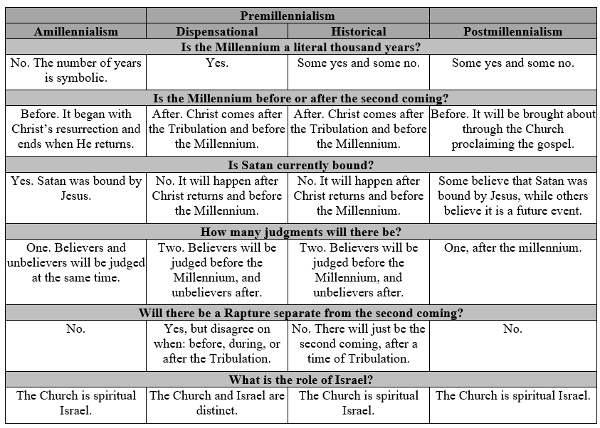While it is true that Revelation 20:1–6 is the only passage that mentions the specific period of one thousand years, it does so six times, and repetition is always significant in the Bible. During this time, Satan is imprisoned in the Abyss and is unable to mislead the nations. The saints, meanwhile, reign with Christ. Three primary viewpoints on the nature of the millennium.