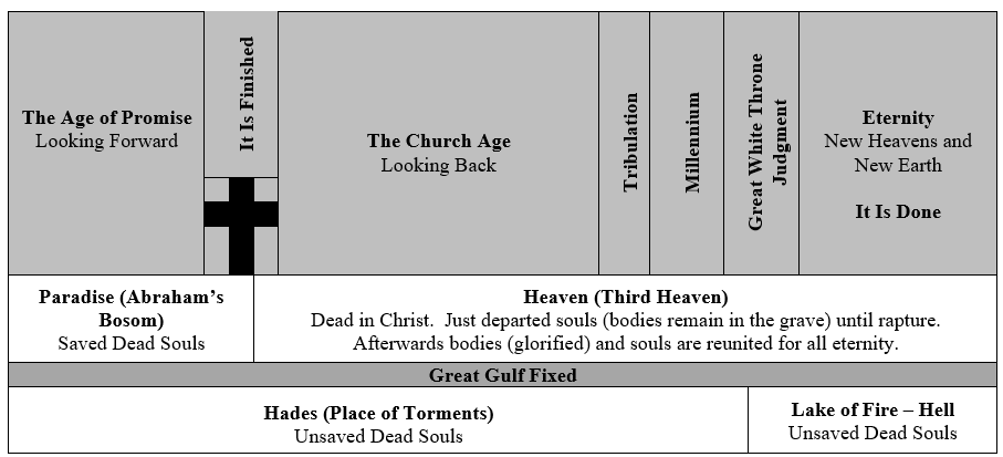 In the book of Acts (also written by Luke) Peter is quoted saying that Christ’s soul dwelt in “the realm of the dead” (Hades) between the time of His death and resurrection (Acts 2:27, 31, NIV 1984). This suggests that Luke considered paradise to be the abode of the righteous in the underworld. If so, then in this reference to Hades includes a section for the righteous dead (e.g., Lazarus in Paradise), as well as a section for the unrighteous dead (e.g., the rich man in Torments), which were separated by a large gulf. It would also reconcile Jesus’ “this day” statement to the thief on the cross with His comment to Mary after His resurrection not to hold onto Him as He had not yet ascended to His Father.